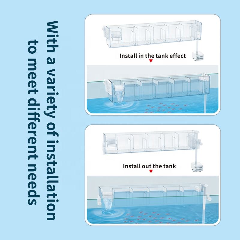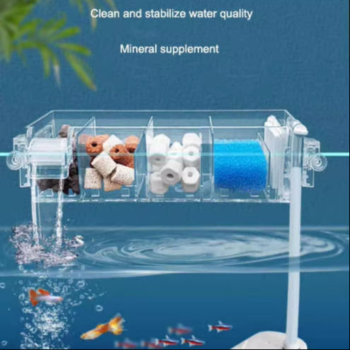 การกรองหลายชั้น: การออกแบบหลายชั้นช่วยให้น้ำหมุนเวียนและทำให้สะอาดอย่างมีประสิทธิภาพ กำจัดสิ่งปนเปื้อนและกลิ่นไม่พึงประสงค์เพื่อรักษาความใสของน้ำในตู้ปลา