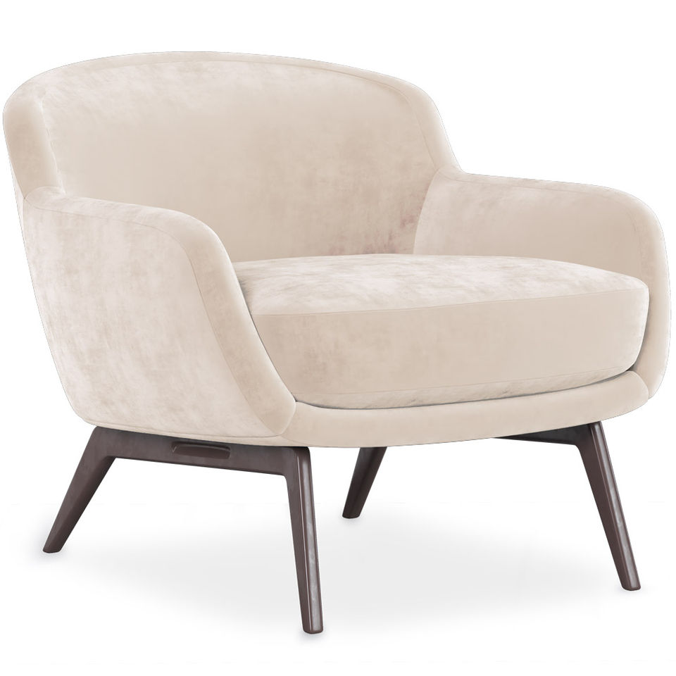 โซฟาเดี่ยว Jenna Modern 1 ที่นั่ง ทำจากโครงไม้สักแท้ หุ้มด้วยกำมะหยี่สีขาวงาช้าง พร้อมการตกแต่งสีวอลนัท สำหรับใช้ภายในอาคาร