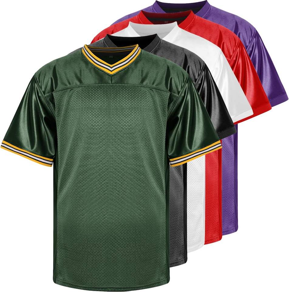 เสื้อเจอร์ซีย์ใส่ได้ทั้งชายและหญิงเสื้อยืดสไตล์ฮิปฮอปย้อมสีล้วนแบบกำหนดเองสำหรับงานปาร์ตี้ฟุตบอลคอวี