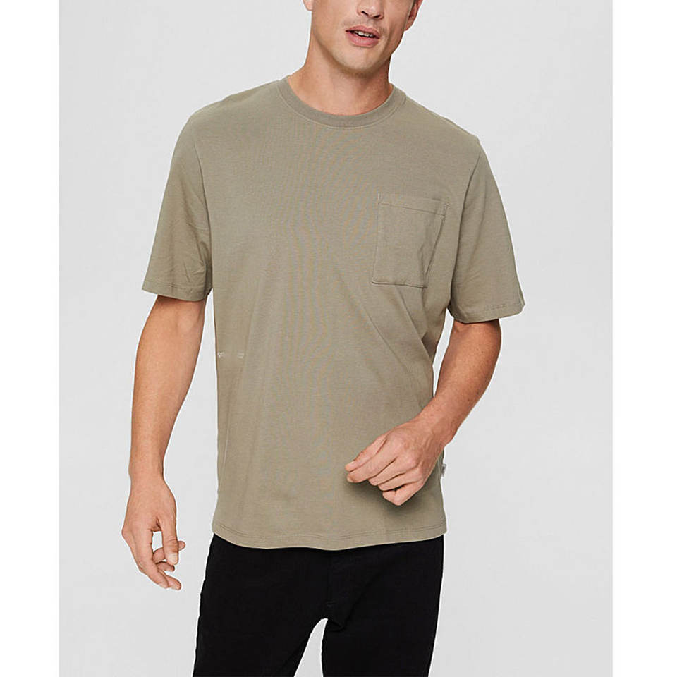 เสื้อยืดคอกลมผ้าคอตตอน100% มีชายเสื้อยืดแต่งขอบด้วยผ้าคอตตอนขนาดใหญ่เสื้อยืดมีกระเป๋า