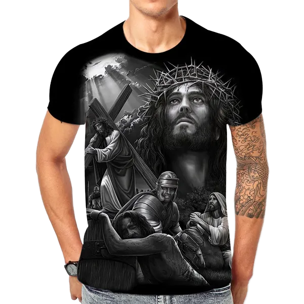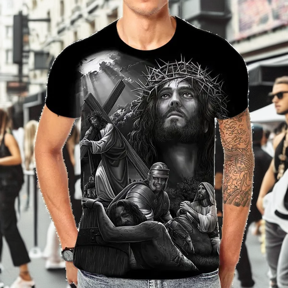 พระเยซูคริสต์เสื้อยืดผู้ชายผู้หญิงลำลองทอระบายอากาศได้เป็นมิตรกับสิ่งแวดล้อมแฟชั่นฤดูร้อนฮาราจูกุสตรีทแวร์เสื้อยืดขนาดใหญ่