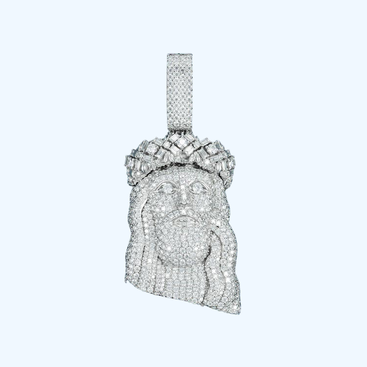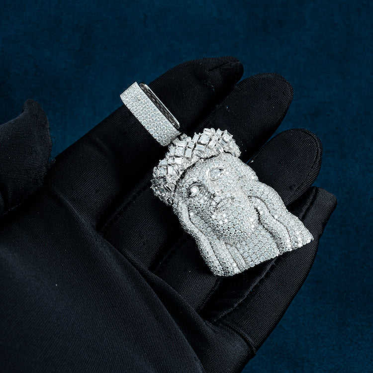 จี้เพชรสำหรับผู้ชายผู้หญิงจี้925เพชรรูปใบหน้าของพระเยซู