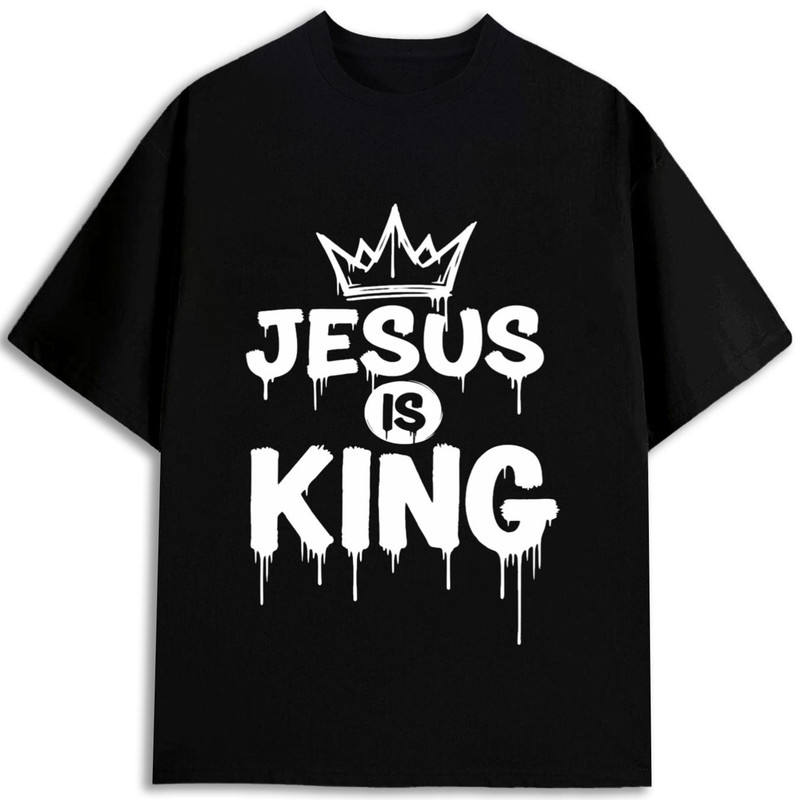 เสื้อยืดพิมพ์ลายพระเยซูคือพระราชา สำหรับผู้ชาย ผ้าฝ้าย 100% 180 กรัม แขนสั้น คอกลม ดีไซน์ลายหยดน้ำ เป็นมิตรกับสิ่งแวดล้อม ทรงพอดีตัว