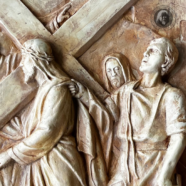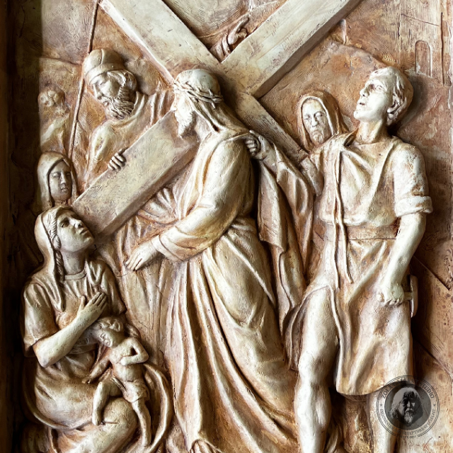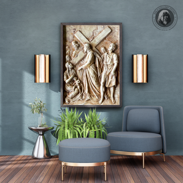 พระเยซูตรัสกับสตรีที่ได้รับแรงบันดาลใจจากการบรรเทาทุกข์แห่งเยรูซาเล็มเป็นการเล่าเรื่องที่เหมาะอย่างยิ่งสำหรับการตกแต่งภายในอันศักดิ์สิทธิ์ที่ได้รับแรงบันดาลใจจากการตกแต่งผนัง