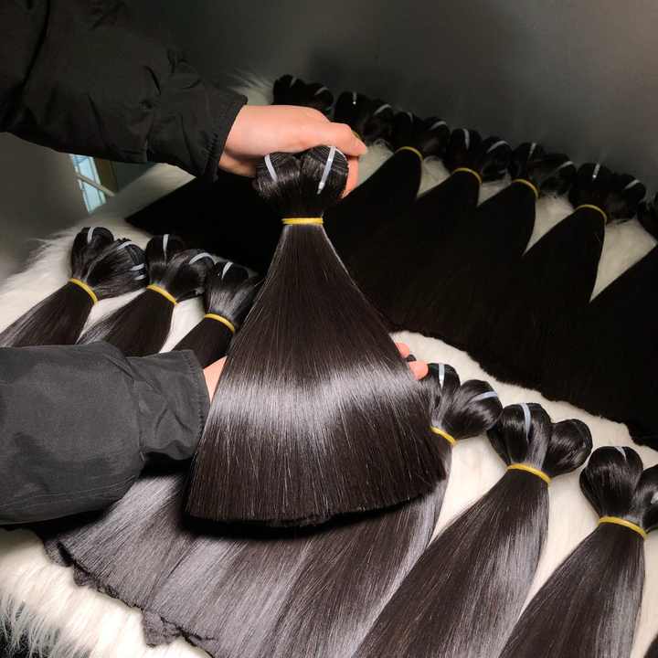 มัดผมมนุษย์สีดำ100% ธรรมชาติเจ็ทบริสุทธิ์แท้เวียดนามไม่ผ่านการทำกระบวนการไม่พันกันไม่หลุดจัดส่งทั่วโลก