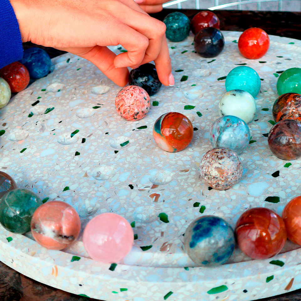 เกมกระดานโซลิแทร์สุดหรู Jeu de พร้อมกระดานหินขัดและลูกบอลหินกึ่งมีค่า