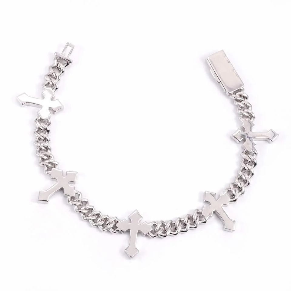สร้อยข้อมือแบบ Cuban Link ประดับเพชรโมอิสซาไนต์ 6 มม. รูปทรงกากบาท เงินแท้ 925 ชุบทอง 18K ประดับเพชร VVS ระดับ Iced สไตล์โบฮีเมียน พร้อมใบรับรอง เหมาะสำหรับเป็นของขวัญ