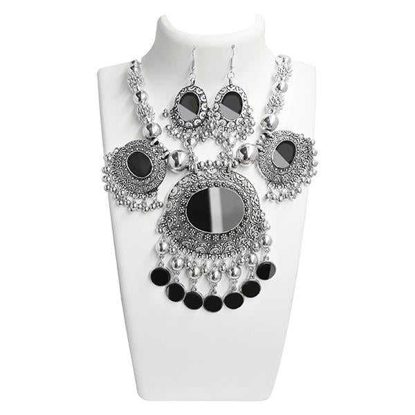 Jewelmunk หรูหราโรเดียมชุบสร้อยคอชุดพิเศษ navratri ทองแดง1110801กับเพทายเพชรมุกเครื่องประดับเจ้าสาวของขวัญ
