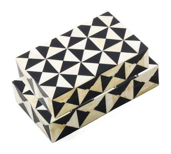 กล่องเครื่องประดับฮอร์นและกระดูกทำงานขัดด้านเรขาคณิตสีดำและสีเบจฝังฝังฝังกระดูกสำหรับงานตกแต่งในราคาโรงงานอเนกประสงค์