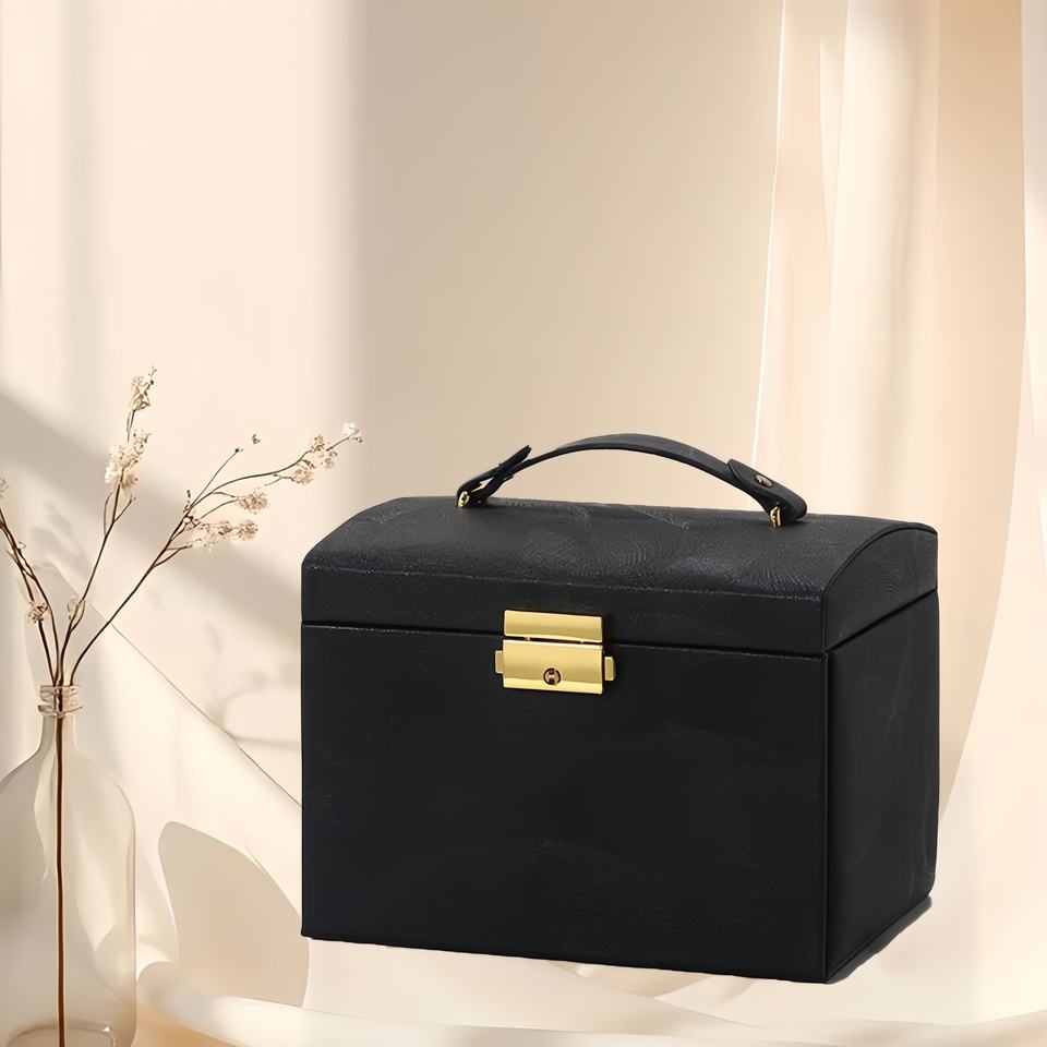 กล่องเก็บเครื่องประดับเดินทางกล่องใส่เครื่องประดับแบบพกพาที่ล็อคได้มี2ลิ้นชักตัวล็อคกระจกและกุญแจ