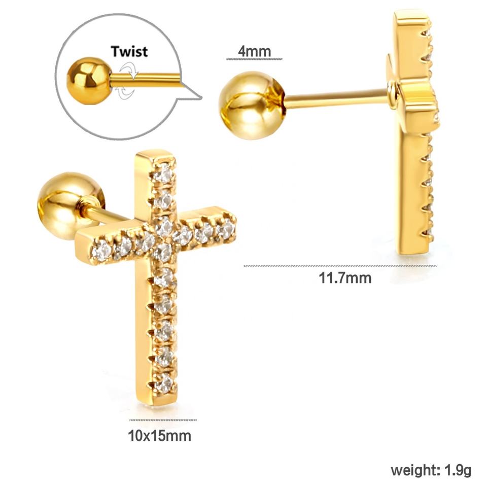 ต่างหูแบบติดเพชรทรงกากบาท ดีไซน์เรียบง่ายทันสมัย คอลเลคชั่นศาสนา คลาสสิก ชุบทอง 18K สำหรับผู้หญิง