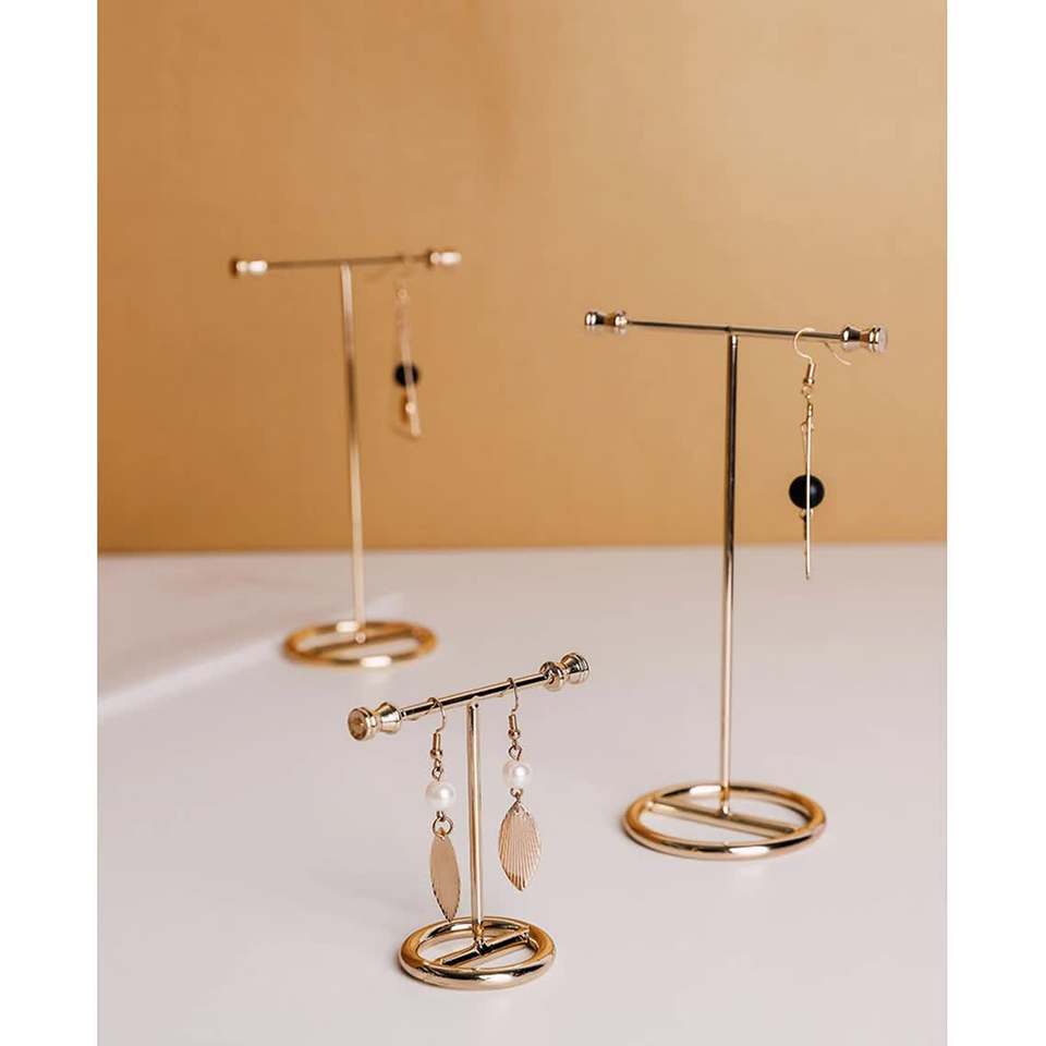 ที่ตั้งโชว์เครื่องประดับสีทองและเทียมอุปกรณ์จัดระเบียบเครื่องประดับสำเร็จรูปสีดำขาตั้งบาร์รูปตัวที