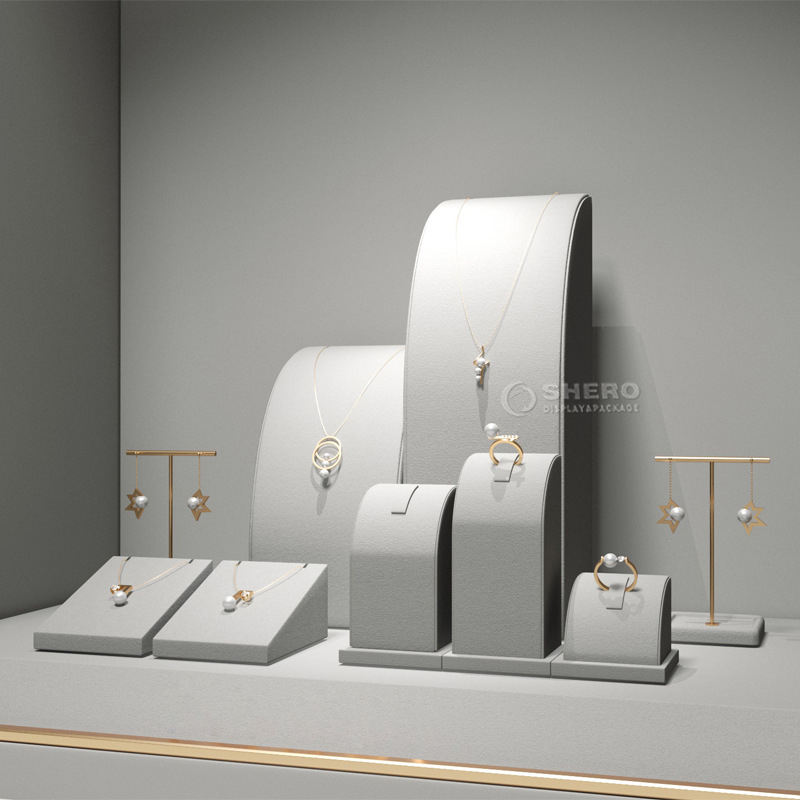 ตู้โชว์เครื่องประดับสำหรับสร้อยคอ แหวน และกำไล ตู้โชว์โลหะและไมโครไฟเบอร์สำหรับบรรจุภัณฑ์และจัดแสดงเครื่องประดับ