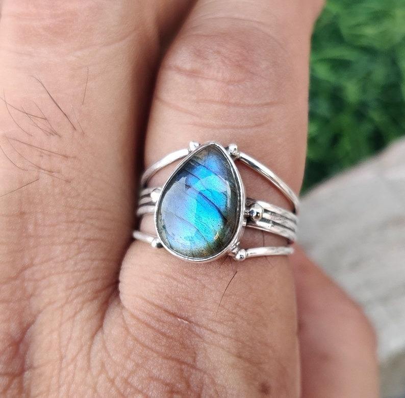 เครื่องประดับสำหรับผู้หญิงเครื่องประดับแหวนเงินสไตล์โบโฮ925อัญมณีลาบราดอไรต์สีเงินสเตอร์ลิงของขวัญแฮนด์เมดที่กำลังมาแรงสำหรับความรัก