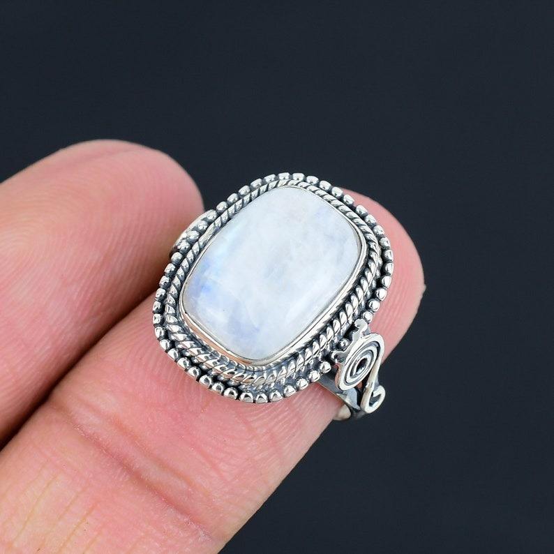 เครื่องประดับสำหรับผู้หญิงแหวนเงินสไตล์ Boho เครื่องประดับ925เงินสเตอลิงมูนสโตนพลอยแฮนด์เมดของขวัญยอดนิยมสำหรับความรัก