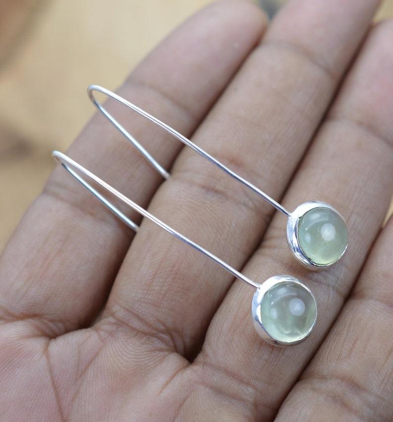 เครื่องประดับสำหรับผู้หญิงต่างหูเงินสไตล์โบโฮเครื่องประดับ925เงินสเตอร์ลิงต่างหูอัญมณีพรีไนต์ยอดนิยมทำด้วยมือของขวัญแห่งความรัก