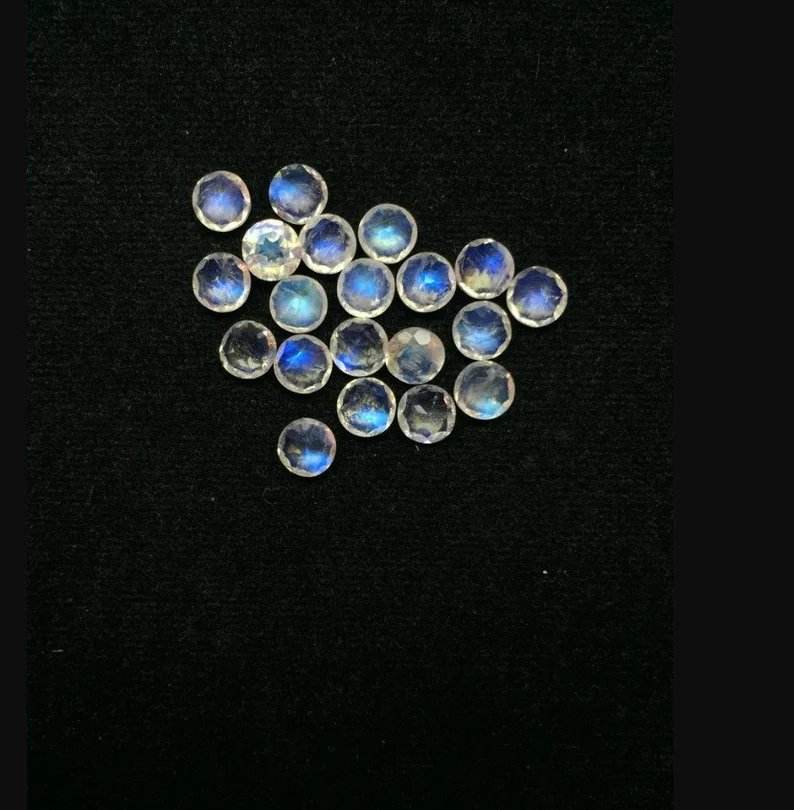 การทำเครื่องประดับสำหรับพลอยมูนสโตนสีรุ้งแบบเหลี่ยมเพชรพลอยสีฟ้าฉูดฉาดขนาด3มม. พลอยทรงหลวม