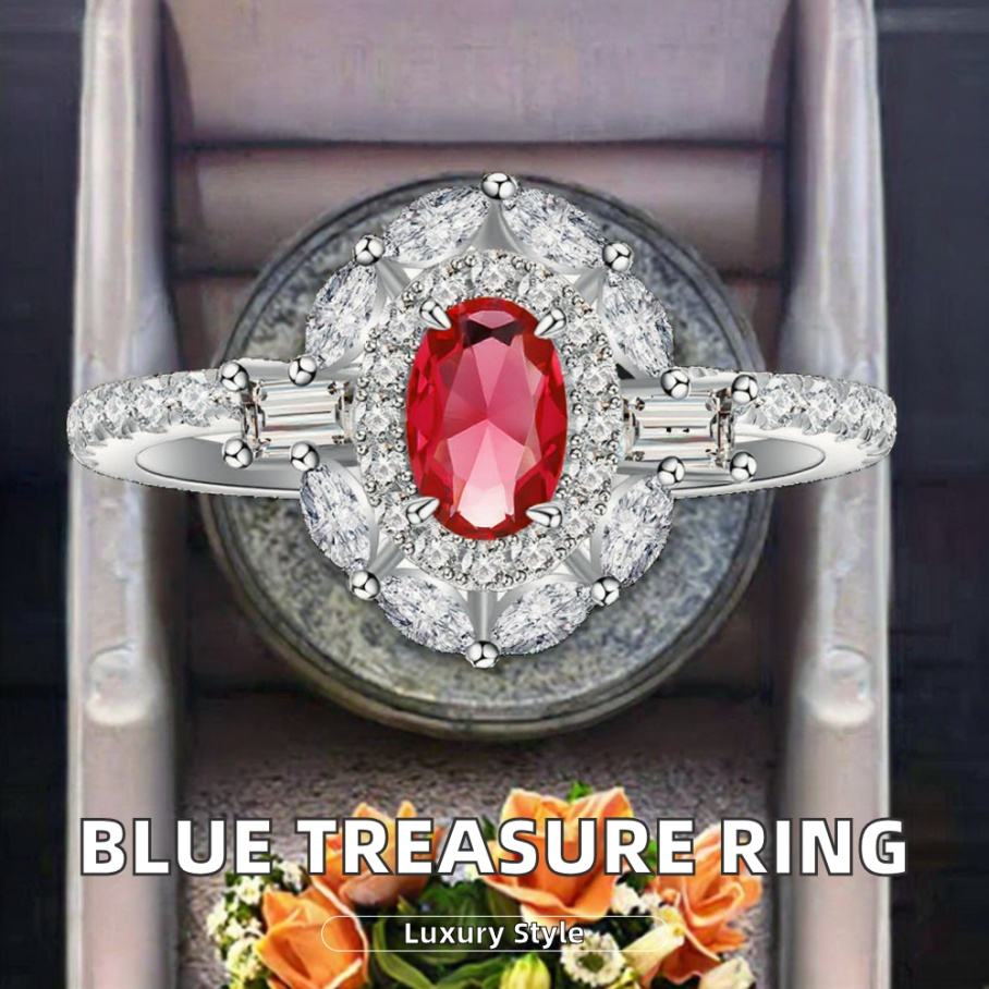 ผู้ผลิตเครื่องประดับ แหวนแต่งงานคลาสสิกเงินแท้ 925 ประดับเพทายสีน้ำเงิน เครื่องประดับแฟชั่นหรูหราสำหรับผู้หญิง ของขวัญสำหรับงานปาร์ตี้ แบบหนีบ