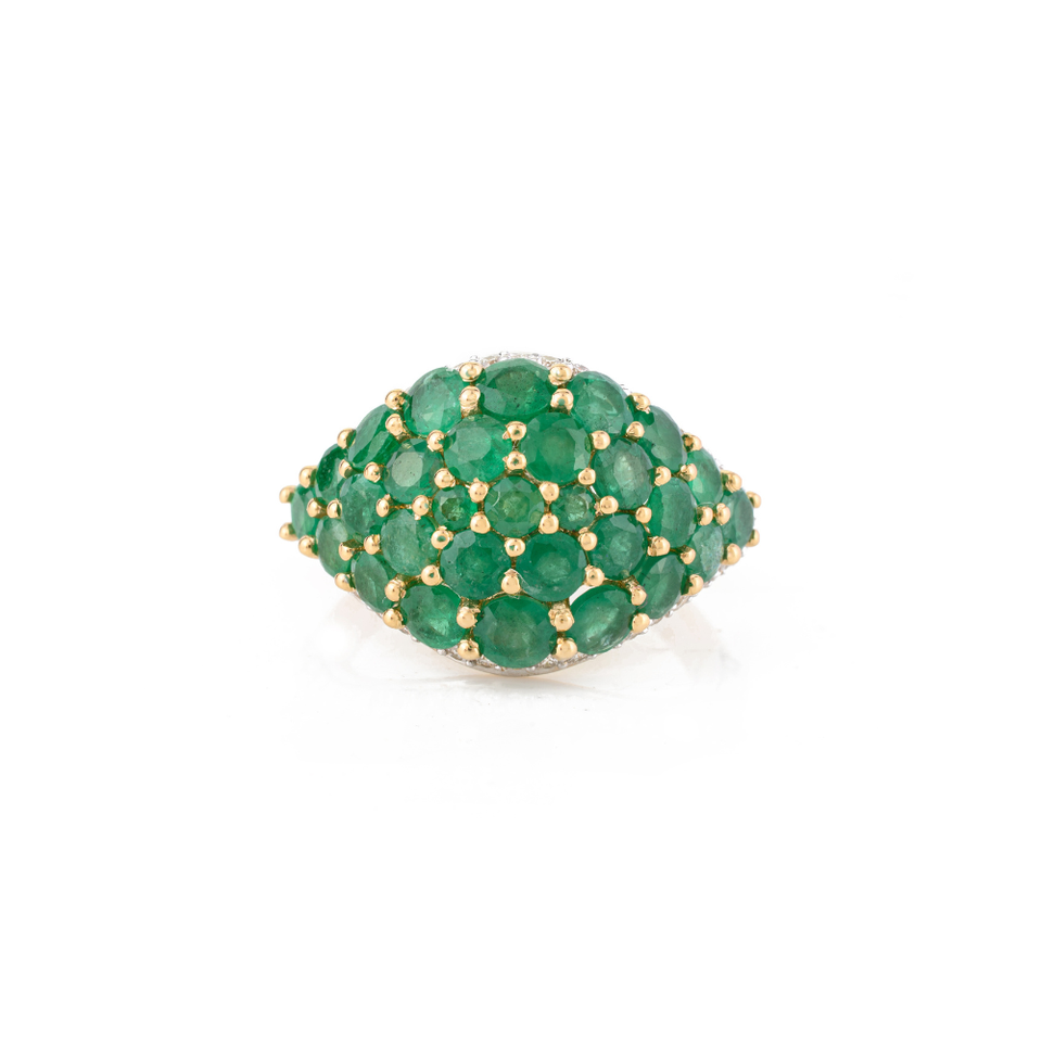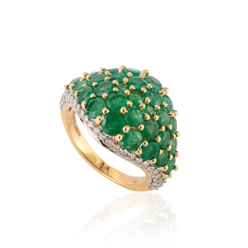 ชุดเครื่องประดับมรกตและเพชรธรรมชาติ18K สีเหลืองทองแหวนโดมขนาดใหญ่ที่ไม่ซ้ำกัน
