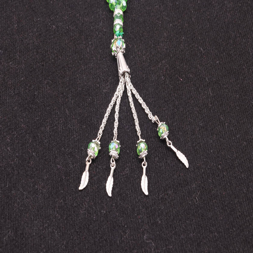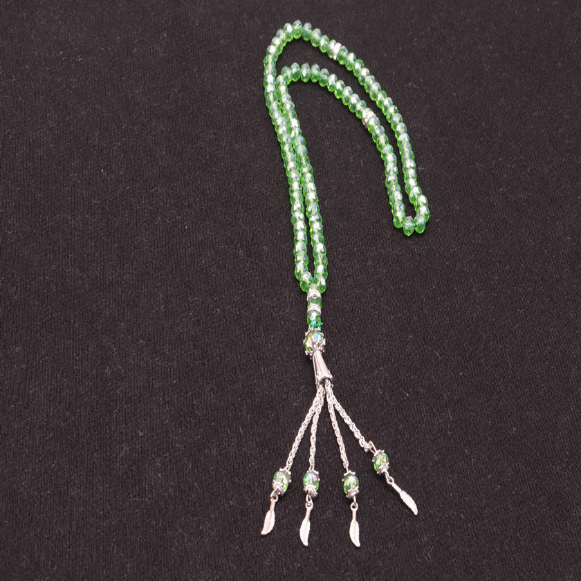 เครื่องประดับสร้อยคอคริสตัลสีเขียว Tasbeeh 99 มุสลิม Mala