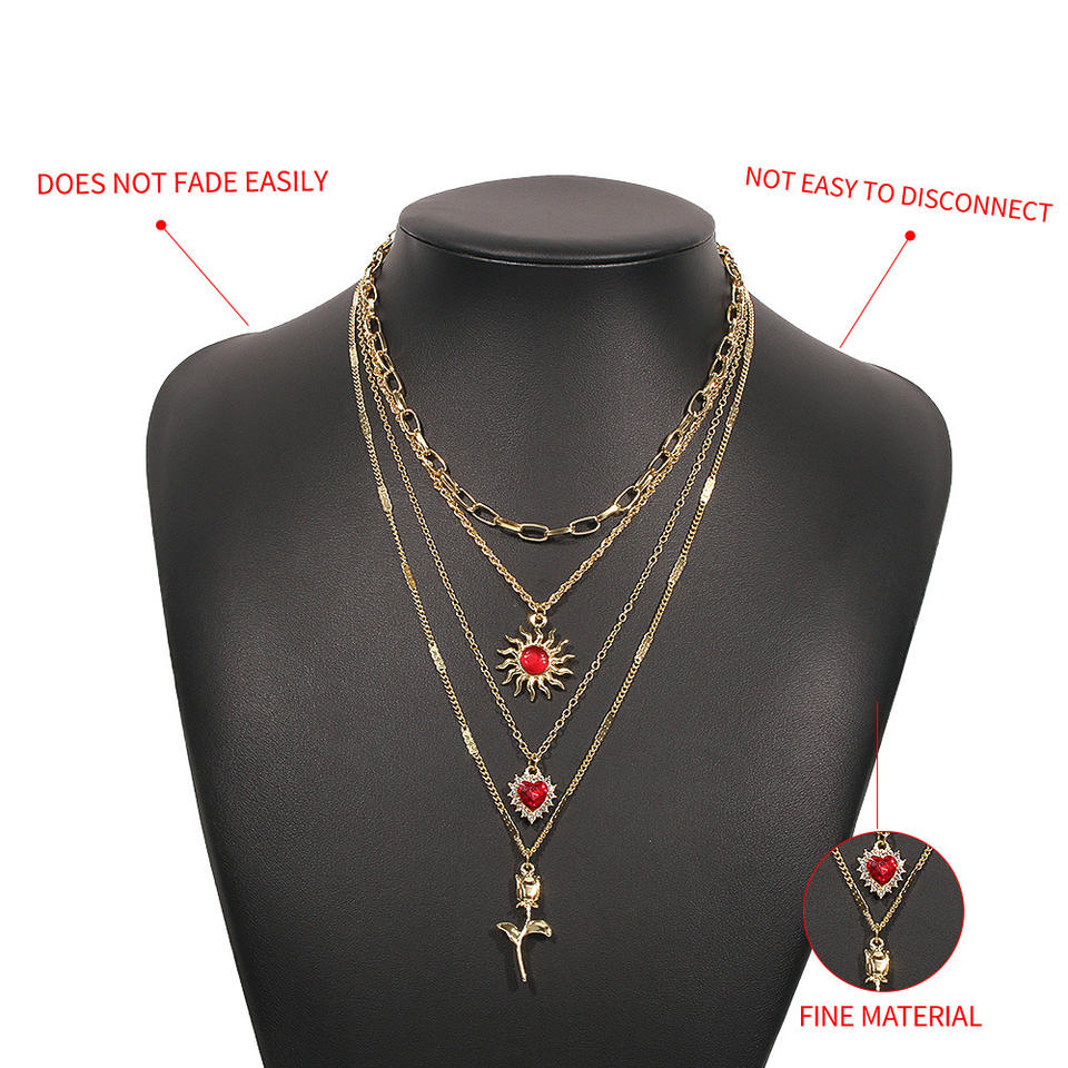 เครื่องประดับสร้อยคอย้อนยุคดวงอาทิตย์รักดอกไม้พร้อมสร้อยคอแฟชั่นเพชรสำหรับผู้หญิง