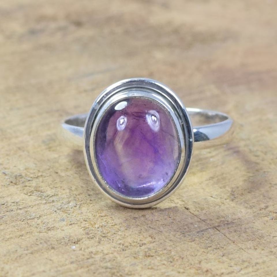 จิวเวลรี่พลอยทรงหลังเบี้ยสำหรับสตูดิโอ925อเมทิสต์เงินสเตอร์ลิงทำมือชุดแหวน-หรูหราสไตล์คริสเตียนใส่ได้ทั้งชายและหญิง