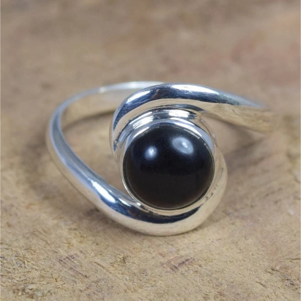 แหวนเงินแท้ 925 ประดับพลอยเทอร์ควอยซ์ทรงอิสระ ดีไซน์หรูหรา สำหรับงานเลี้ยงสไตล์คริสเตียน ของขวัญสำหรับผู้หญิง รุ่น Jewellery Studio RR30 Infinite Shape Turquoise Bezel Setting