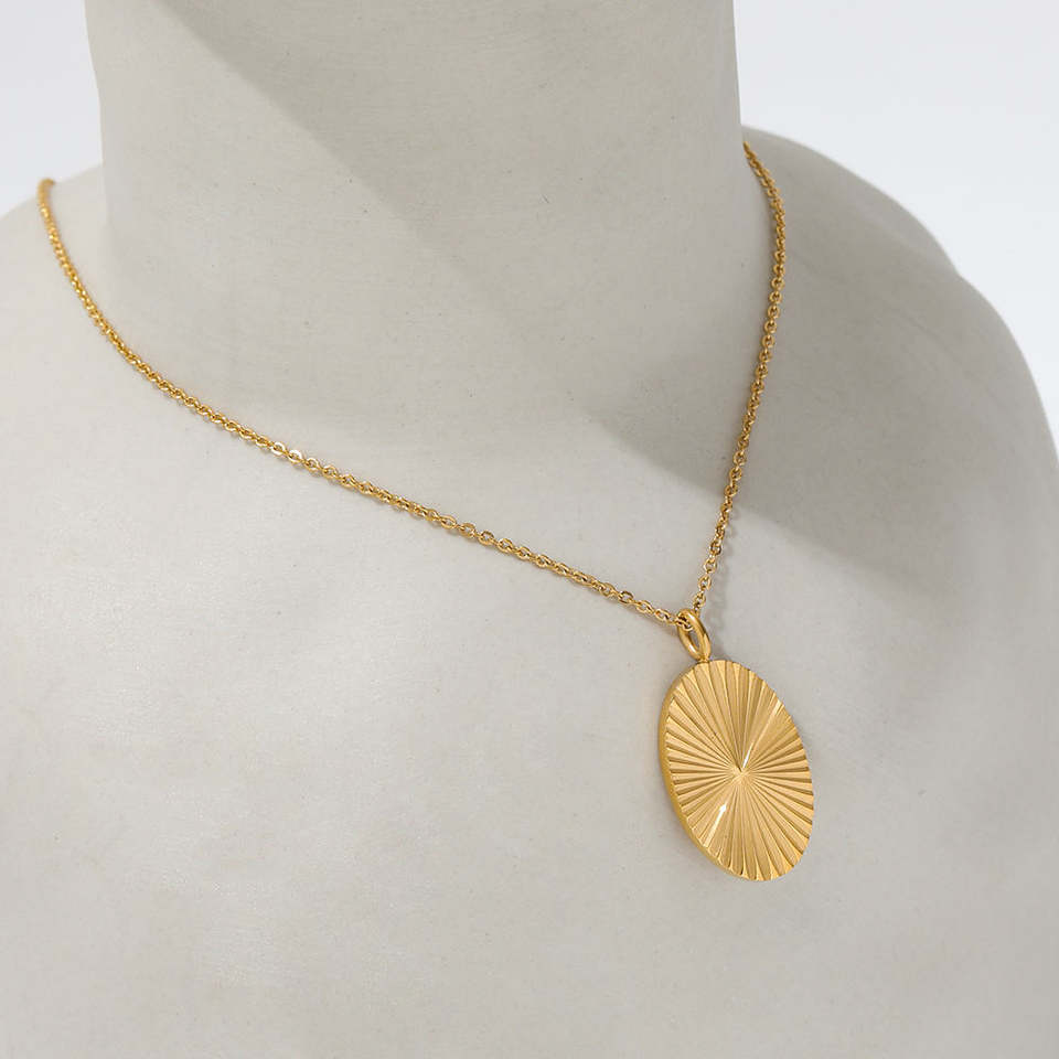 Jewelry Tarnish Free PVD Gold Plated Sunburst Oval Trendy Necklace Wholesale