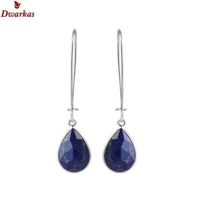 ต่างหูเงินสเตอร์ลิง925จากนักออกแบบยอดนิยมสำหรับเด็กผู้หญิงเครื่องประดับแฟชั่นพร้อมต่างหูหิน Lapis Lazuli ชุบทอง