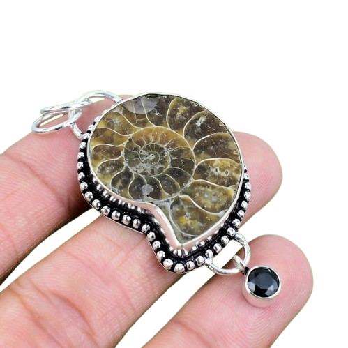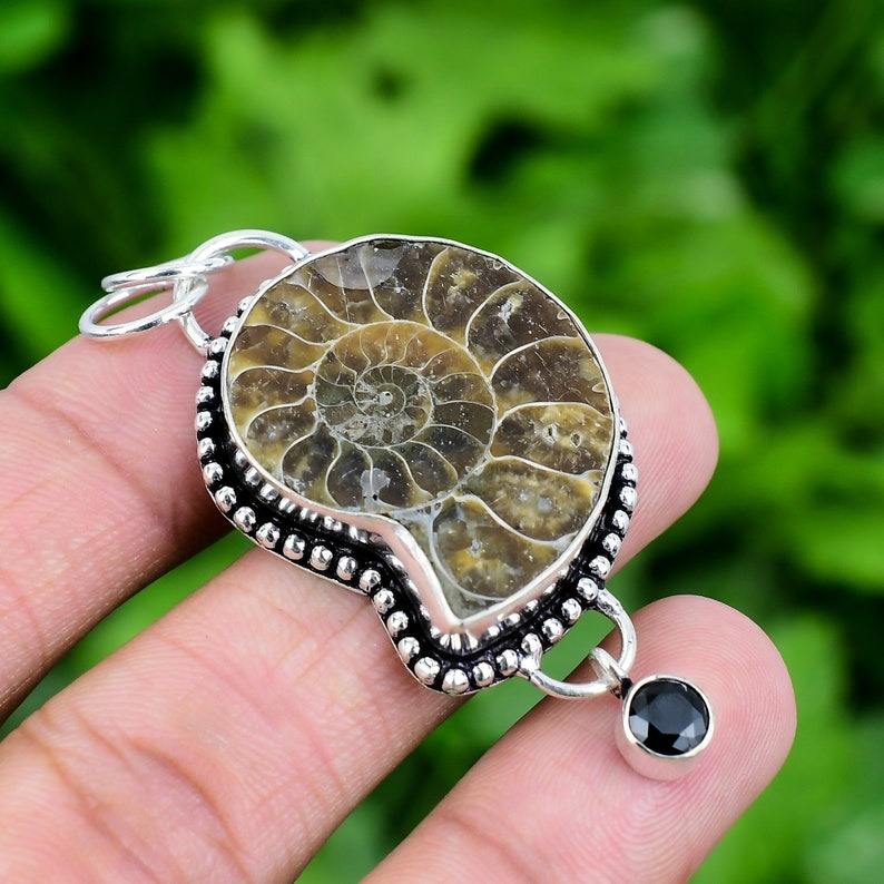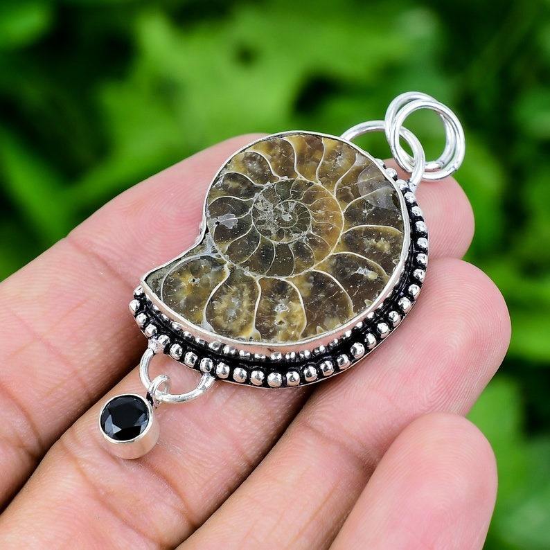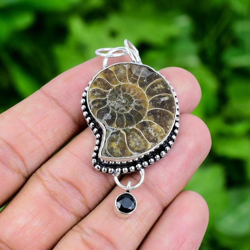 เครื่องประดับสำหรับผู้หญิงเครื่องประดับจี้สไตล์โบโฮ925เงินสเตอร์ลิงอัญมณีแอมโมไนต์ของขวัญแฮนด์เมดที่กำลังมาแรงสำหรับความรัก