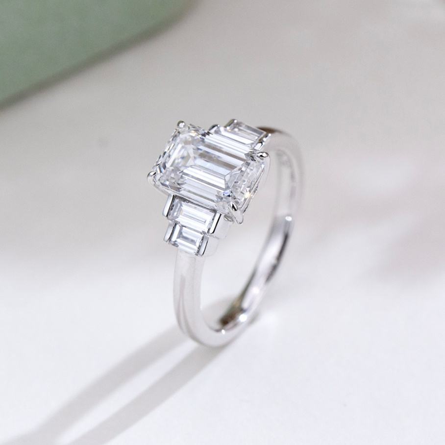 Jewelry in Stock MSR-1952 18K White Gold Solitaire Ring Emerald Cut 2.06CT D VS1 Lab Grown Diamond Engagement Ring