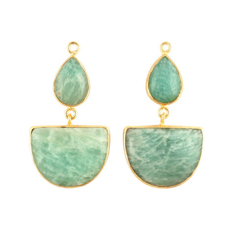 เครื่องประดับทำรูปครึ่งวงกลมและทรงกลม,ต่างหู Diy Amazonite ธรรมชาติตัวเชื่อมต่อเครื่องประดับทองชุบเสน่ห์