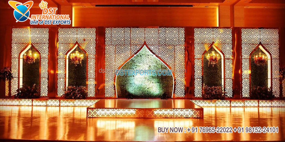 แผงฉากหลังตัดด้วยเลเซอร์สำหรับเวทีแต่งงานชาวยิวใช้ตกแต่งเวทีฉากหลังตัดด้วยเลเซอร์สำหรับงานแต่งงานสไตล์อาหรับ