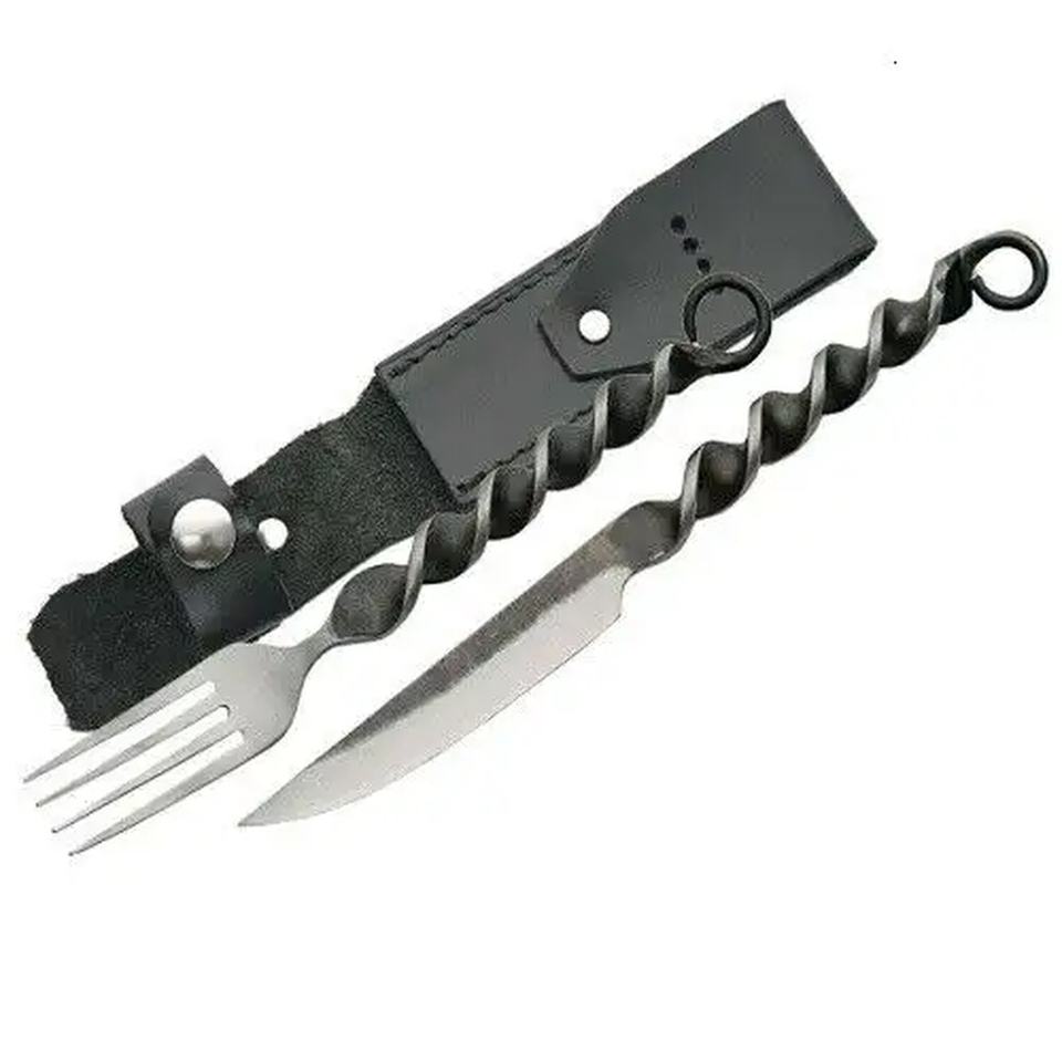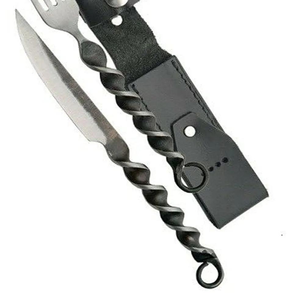 ชุดมีดและส้อมเชฟเหล็กกล้าคาร์บอนทำมือแบบโบราณยุคกลาง Jexmoo พร้อมซองหนังอเนกประสงค์