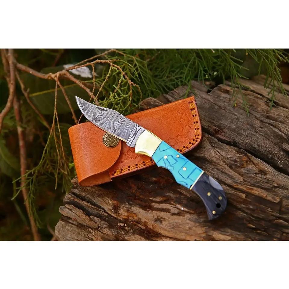 มีดพกพาอเนกประสงค์ Jexmoo OEM ทำมือจากเหล็กดามัสกัส ขนาด 7 นิ้ว พร้อมปลอกหนัง เหมาะสำหรับเป็นของขวัญวันครบรอบ หรือของขวัญสำหรับเพื่อนเจ้าบ่าว