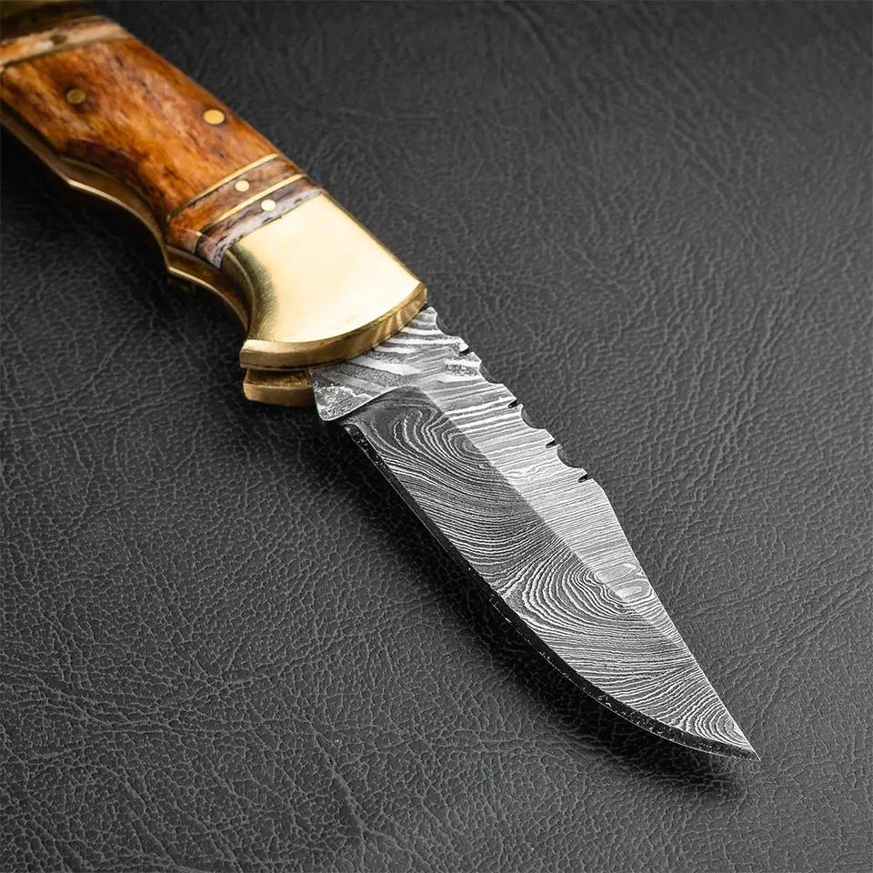 มีดพกเหล็กดามัสกัสทำมือเกรดอุตสาหกรรม Jexmoo พร้อมปลอกหนัง สำหรับเป็นของขวัญวันครบรอบ ของขวัญเพื่อนเจ้าบ่าว
