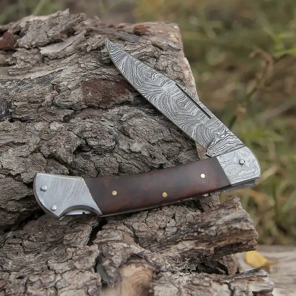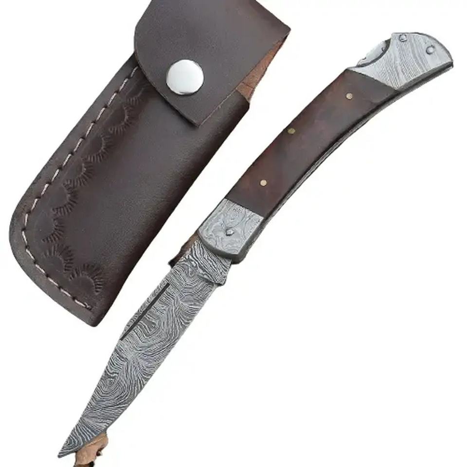 มีดพกพาเหล็กดามัสกัสอเนกประสงค์ Jexmoo OEM ผลิตตามสั่ง ทำด้วยมือ พร้อมปลอกหนัง สำหรับเป็นของขวัญวันครบรอบ ของขวัญเพื่อนเจ้าบ่าว