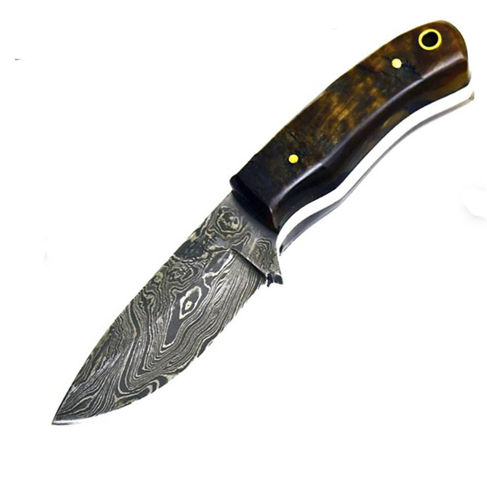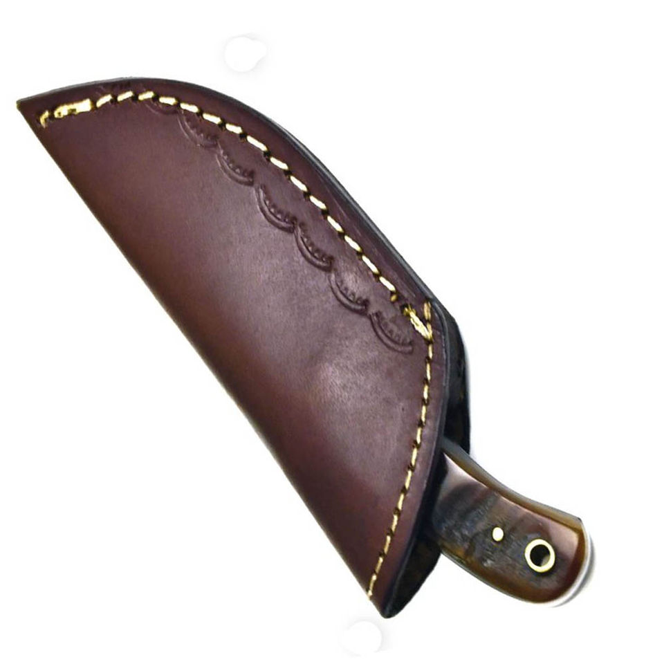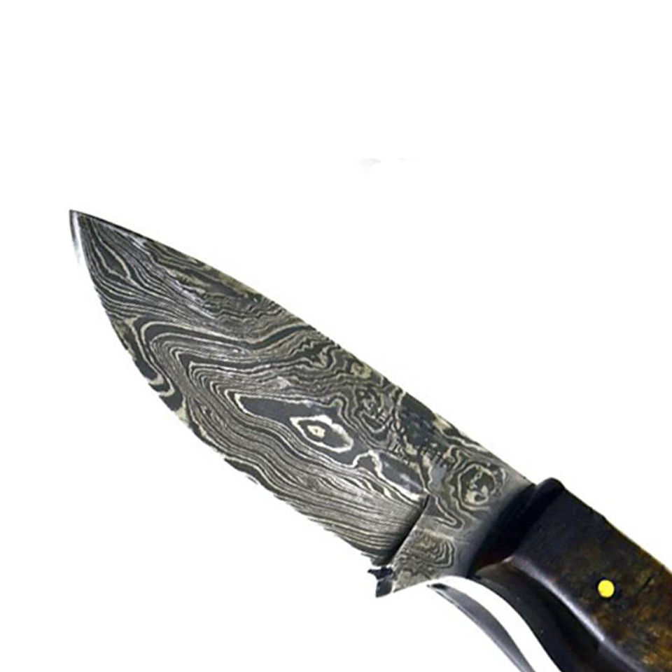 มีดล่าสัตว์เกรดอุตสาหกรรม Jexmoo OEM ผลิตด้วยมือจากเหล็กกล้าไร้สนิม ขอบหยัก ปลายแหลม ด้ามจับทำจากเรซิ่นไม้ พร้อมปลอกหนัง