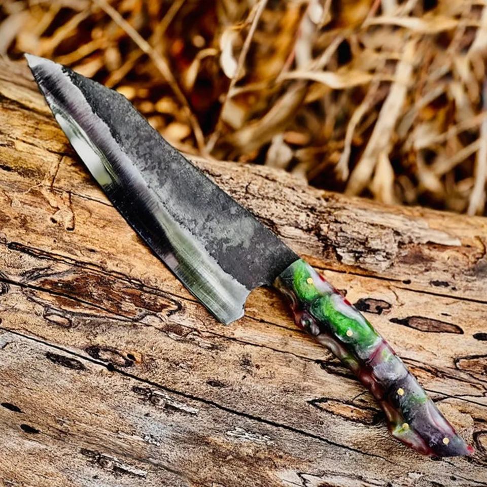 มีดเชฟเหล็กกล้าคาร์บอนทำมือ Jexmoo ขนาด 8 นิ้ว ใบมีดหนา 3.0 มม. ด้ามไม้ ดีไซน์ใหม่ ของขวัญสุดพิเศษ
