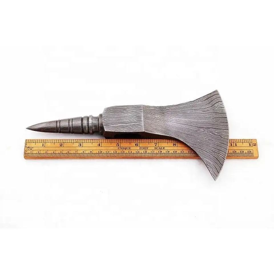 ขวานเหล็กดามัสกัสลายบิดเกลียว งานแฮนด์เมดสั่งทำพิเศษจาก Jexmoo พร้อมปลอกหนัง ของขวัญสำหรับคุณพ่อสำหรับกิจกรรมกลางแจ้ง