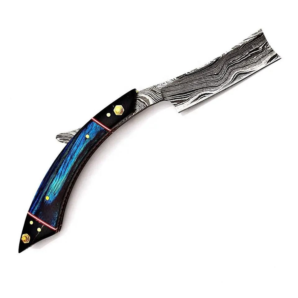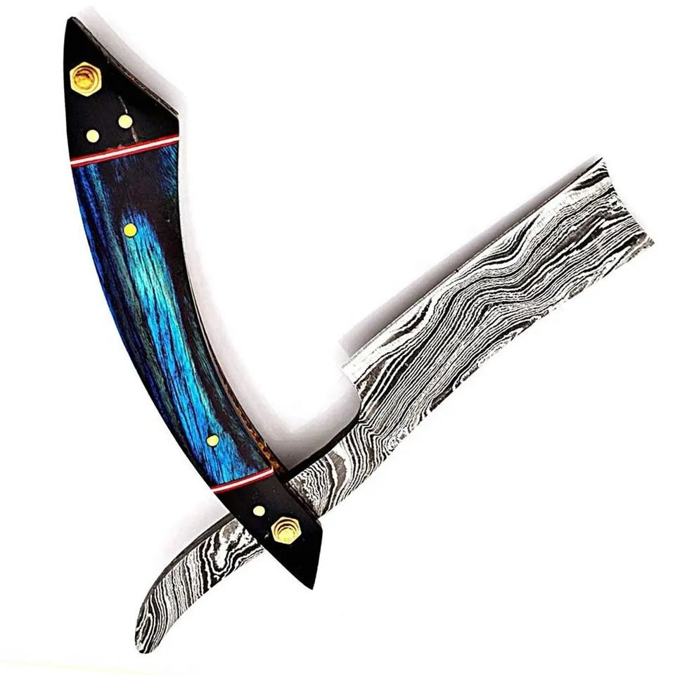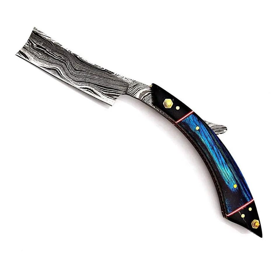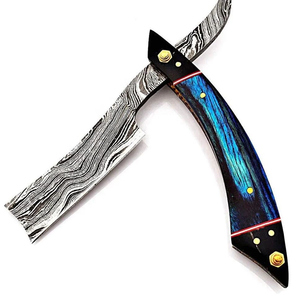 มีดโกนเหล็กดามัสกัสแบบดั้งเดิมทำมือ Jexmoo DIY OEM ขนาด 7 นิ้ว สำหรับช่างตัดผม พร้อมปลอกหนัง ของขวัญสำหรับเพื่อนเจ้าบ่าว