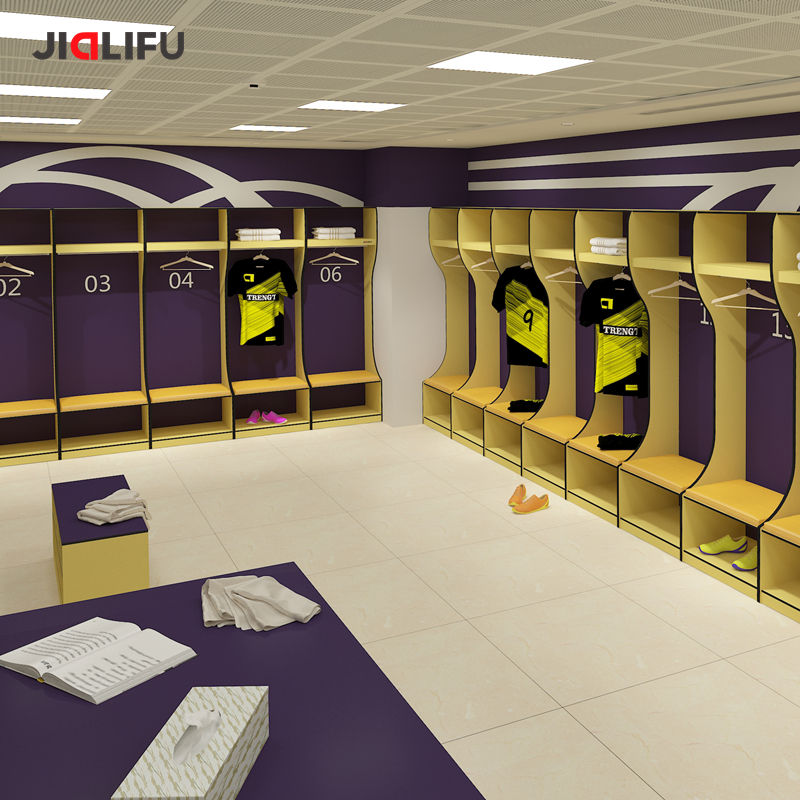 ตู้เก็บของนักกีฬาฟุตบอลแบบกำหนดเองของ Jialifu สำหรับสนามกีฬา ผลิตจากวัสดุ HPL ระดับมืออาชีพ เหมาะสำหรับห้องล็อกเกอร์ NBA