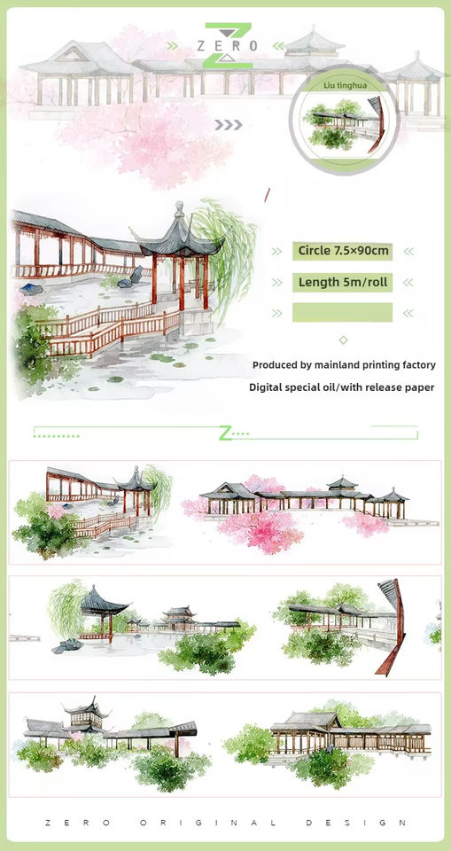Jiangnan เทปกาวกันน้ำ, เทปกาวพิมพ์ลายใบไม้1ม้วนเทปกาวกันน้ำ