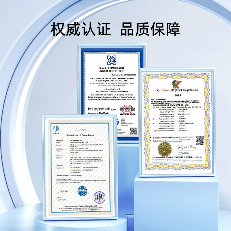 แปรงสีฟันโซนิค Jiangsu Buyone Oral Care ขนแปรงนุ่ม กันน้ำระดับ IPX7 แบตเตอรี่แบบชาร์จได้ ใช้งานได้ 7 วัน บรรจุภัณฑ์เดี่ยว