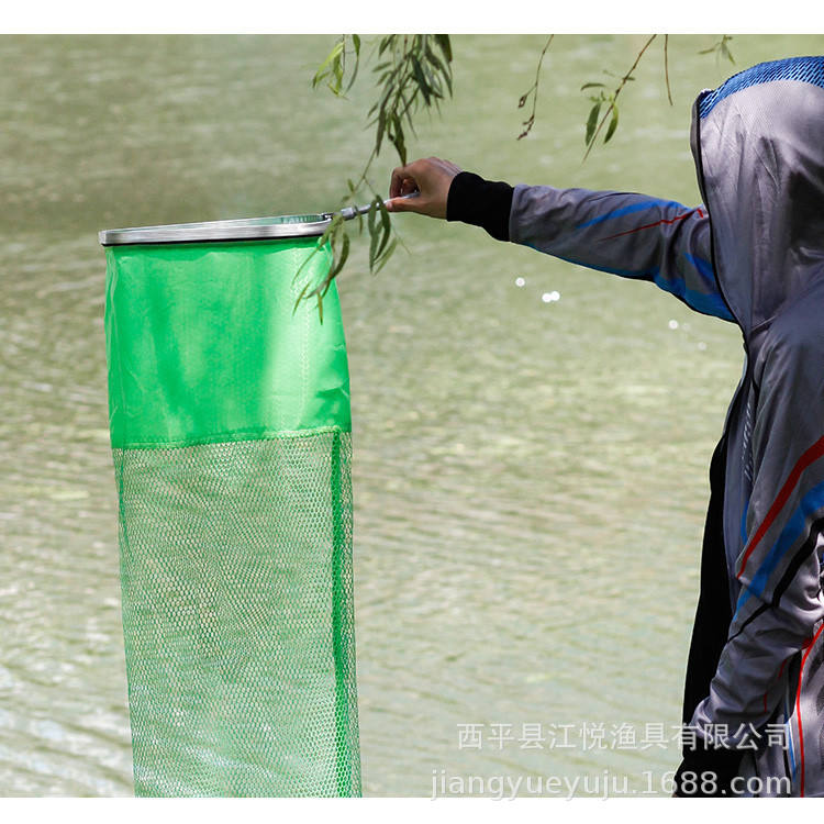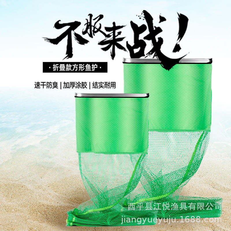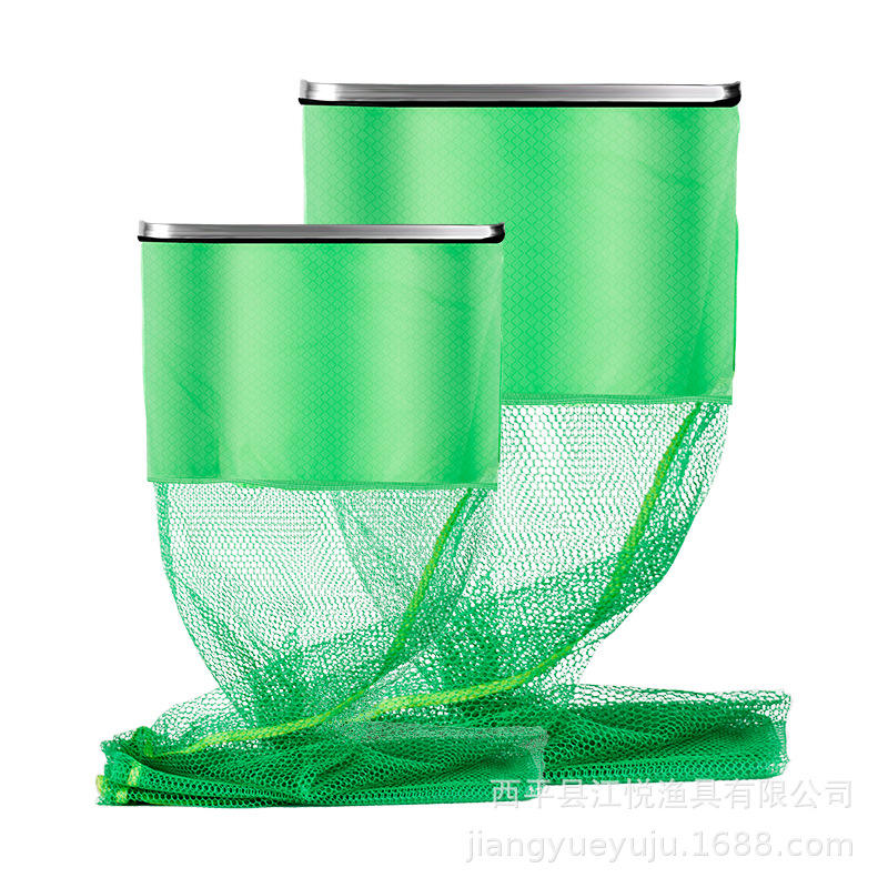 กรงตกปลาพับได้ทรงสี่เหลี่ยม Jiangyue ขนาด 17x30 17x40 ตาข่ายโพลีเอทิลีน ถุงใส่ปลาสด อุปกรณ์ตกปลาสำหรับใช้งานกลางแจ้ง