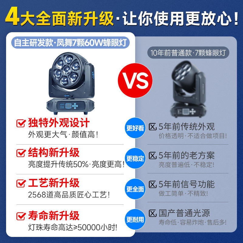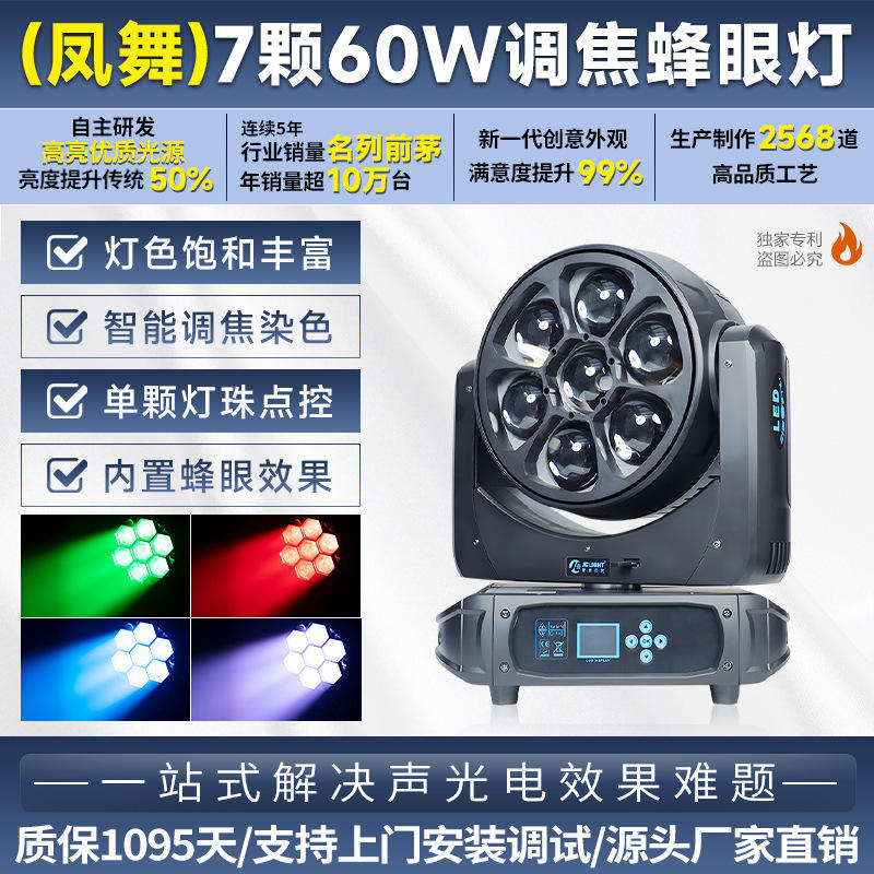 Jiechuang 7 Led Bee Eye Moving Head Light 60W Stage Lighting Indoor Performance Color Changing Intelligent Light