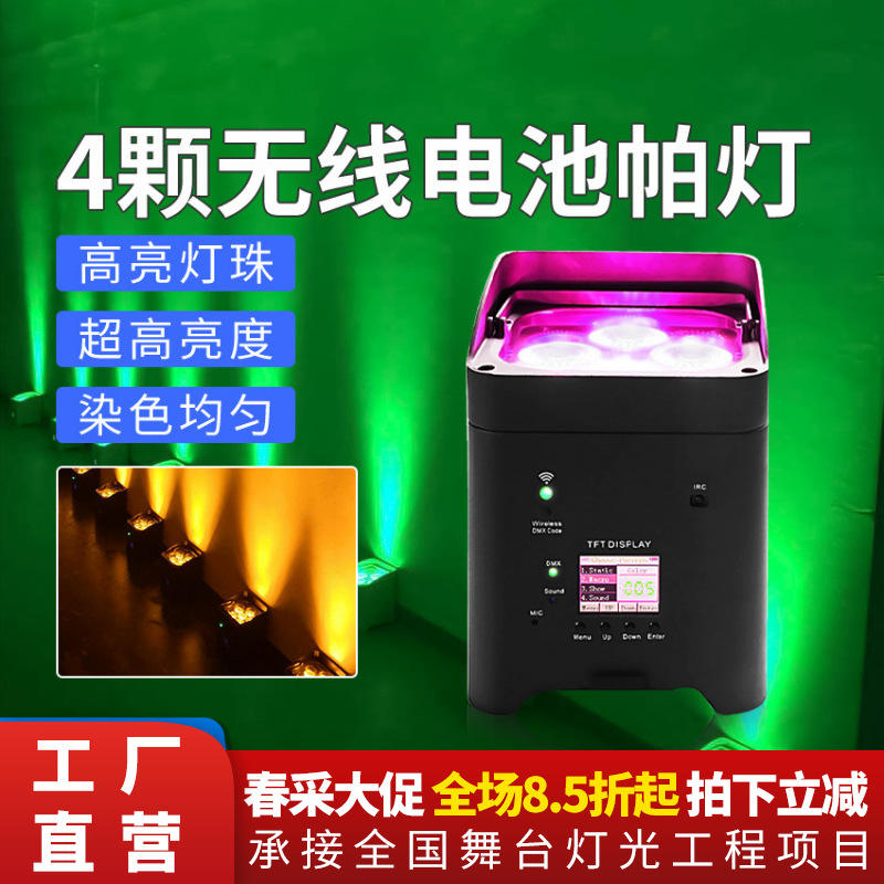 ไฟพาร์ LED ไร้สาย 4 ดวง ยี่ห้อ Jiechuang แบบชาร์จได้ 6-in-1 ปรับสีได้ ใช้สำหรับเวที พกพาสะดวก ใช้เป็นไฟสร้างบรรยากาศได้