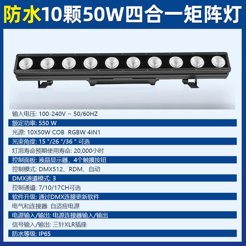 ไฟสปอตไลท์ Jiechuang Matrix Light 10x50W กันน้ำ 4 in 1 สำหรับเวทีกลางแจ้ง ควบคุมด้วยเสียง เปลี่ยนสีได้