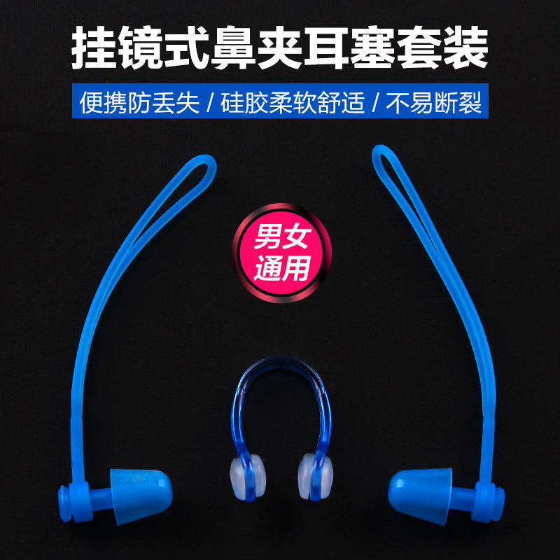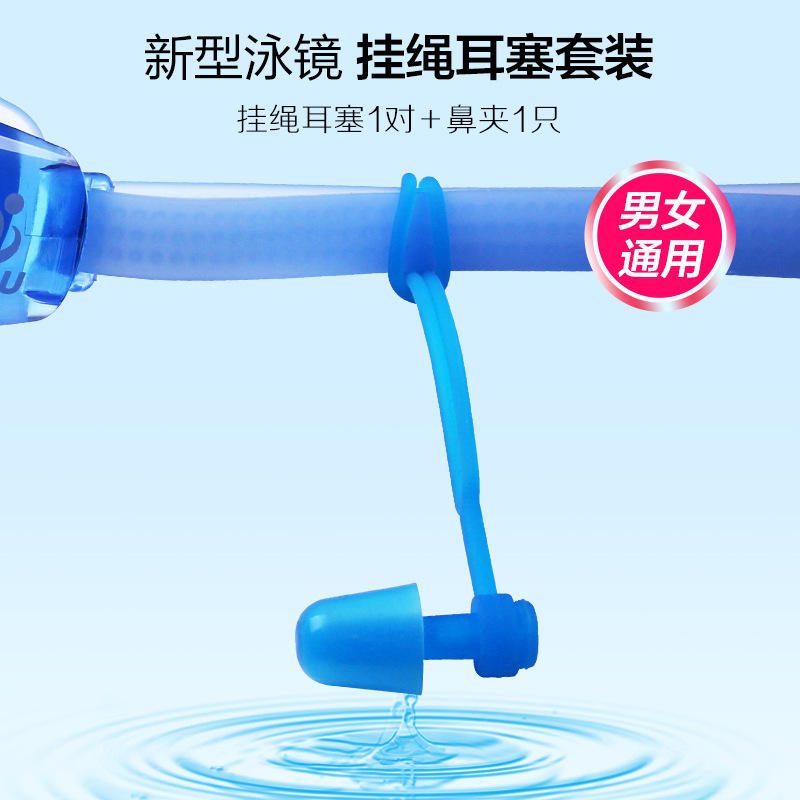เจียหู เอซี 12 ชุดที่อุดหูแบบคลิปหนีบจมูกพร้อมเชือกเส้นเล็กซิลิโคนอ่อนนุ่มสำหรับว่ายน้ำสำหรับเด็กและผู้ใหญ่สีฟ้าสีดำสีชมพูสีเหลืองสีส้มสีเขียว