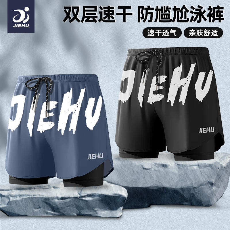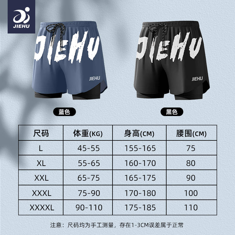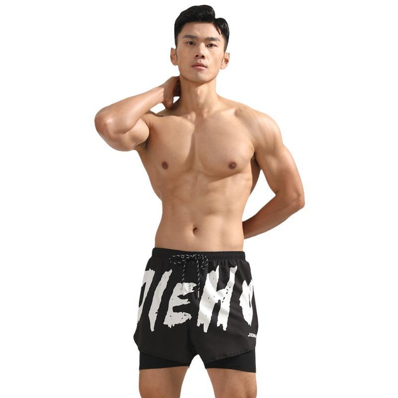 กางเกงว่ายน้ำแห้งเร็วของผู้ชาย jiehu กางเกงขาสั้นทรงหลวมสองชั้นสีดำ XL XXXL XXL xxxxxxxxl